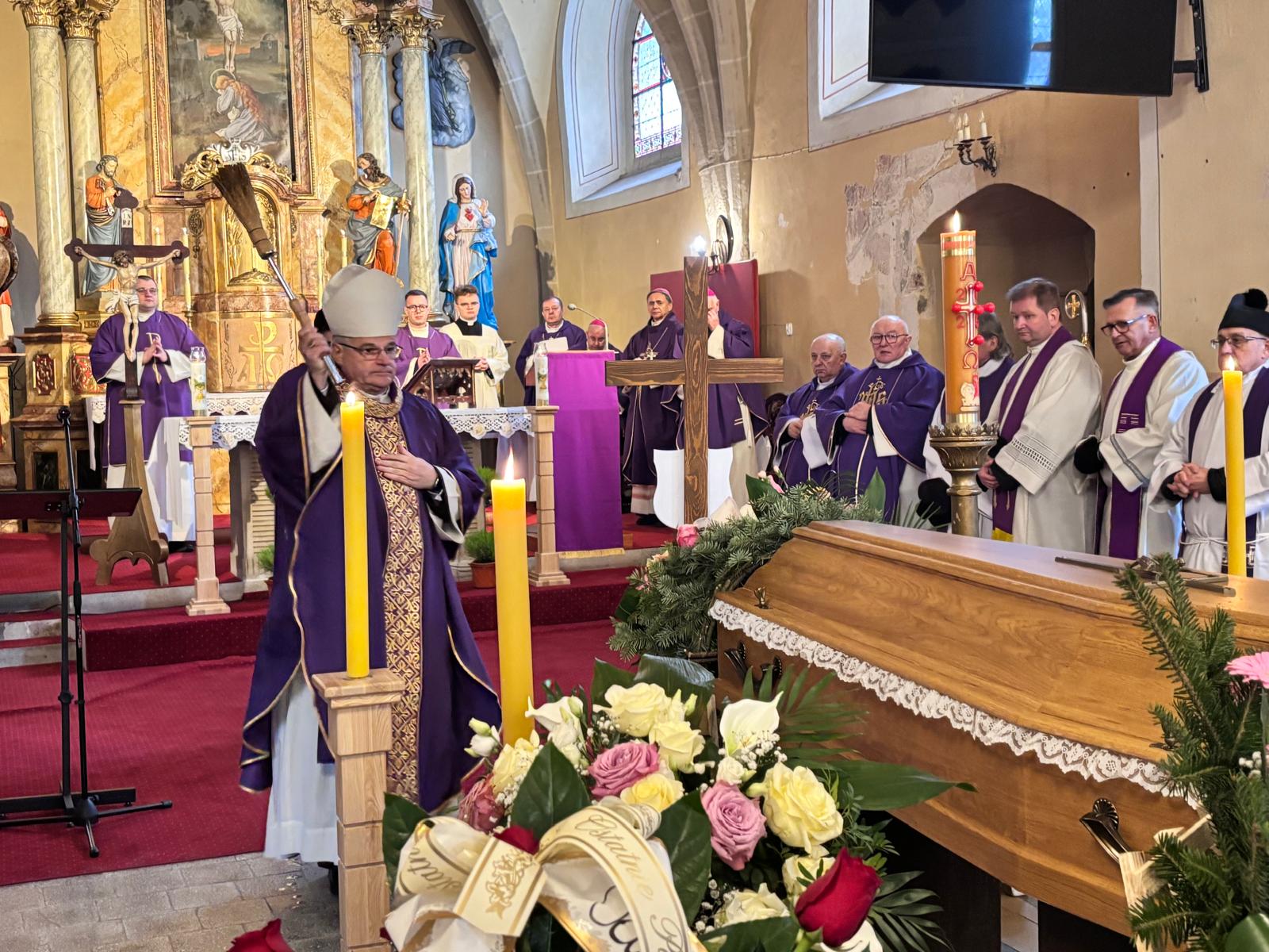 Mszy św. pogrzebowej 12 lutego 2026 r. przewodniczył ks. biskup świdnicki Marek Mendyk w asyście biskupa pomocniczego Adama Bałabucha, biskupa pomocniczego diecezji legnickiej Piotra Wawrzynka, biskupa pomocniczego diecezji opolskiej Rudolfa Pierskały oraz biskupa seniora diecezji świdnickiej Ignacego Deca, który wygłosił homilię.