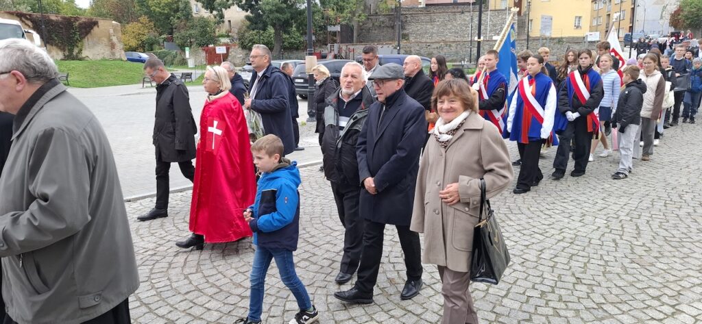 Po liturgii poczty sztandarowe, uczestnicy wydarzenia prowadzeni przez Wrocławską Orkiestrę Dętej przemaszerowali przez miasto, składając kwiaty przy pomnikach nawiązujących do postaci i zdarzeń, które wpływały na dzieje Polski. Ks. biskup Marek Mendyk poświęcił kamienną tablicę na murze, przy wejściu do Centrum Spotkań „Polskie Gniazdo” im. Świętego Jana Pawła II w Niemczy. w kaplicy centrum odmówiono Koronkę do Bożego Miłosierdzia i Litanię do Świętego Jana Pawła. Kolejnym akcentem modlitewnym kilkugodzinnego spotkania była modlitwa różańcowa w intencji pokoju dla Polski i świata. Symboliczny różaniec utworzony z błękitnych baloników na zakończenie uroczystości wzniósł się do nieba przy aplauzie zebranych.