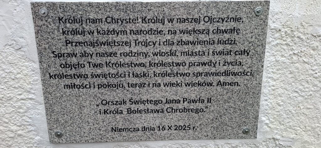Motywów do modlitwy i spotkania było wyjątkowo dużo. 47. rocznica wyboru Karola Wojtyły na papieża, millenium koronacji Bolesława Chrobrego na pierwszego Króla Polski, rok jubileuszowy w Kościele Rzymsko-Katolickim, 10-lecia ustanowienia Centrum Spotkań „Polskie Gniazdo” im. Świętego Jana Pawła II w Niemczy i 20-lecie powstania Fundacji Polskie Gniazdo. Swego rodzaju „rocznicowa kumulacja” sprawiła, że 16 października 2025 r. na kilka godzin Parafia pw. Niepokalanego Poczęcia Najświętszej Maryi Panny w Niemczy oraz miejscowy samorząd gminny stały się animatorami niecodziennego świętowania. W centrum duchowych przeżyć było przypomnienie, że 16 października 1978 r. ks. kardynał Karol Wojtyła z Krakowa został wybrany na Stolicę św. Piotra w Rzymie.