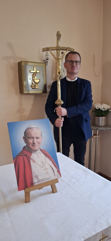 Św. Jan Paweł II niezmiennie pozostaje patronem środowisk dbających o polskość i jej związki z chrześcijaństwem. Jest też modelem życia zgodnego z Ewangelią, o czym mówił ks. biskup Marek Mendyk przytaczając mało znany epizod z życia Karola Wojtyły zanim został kapłanem. Jeszcze podczas studiów na Uniwersytecie Jagiellońskim młody Karol Wojtyła pełnił funkcję wiceprezesa tzw. Bratniej Pomocy studentów katolickich. Na drzwiach pokoju, w którym uczył się Karol Wojtyła pojawiła się mała karteczka przyklejona do tych drzwi: „Przyszły święty”. Patrząc na życie Karola Wojtyły, można powiedzieć, że ten proroczy napis w całej rozciągłości wypełnia się w jego życiu. Opinia, którą ukształtowała opinia publiczna o nim, okazała się uzasadniona. Sympatia, gorliwa modlitwa, spontaniczne wypowiedzi, łatwość nawiązywania kontaktów nie były atrybutami wytworzonymi przez media, ale jego autentycznymi cechami. Chrześcijaństwo, które często mamy tendencję odczłowieczać, jakby życie wiary było czymś eterycznym i prywatnym, było dla papieża Jana Pawła II konkretnym, żywym doświadczeniem spotkania z Jezusem. (…)