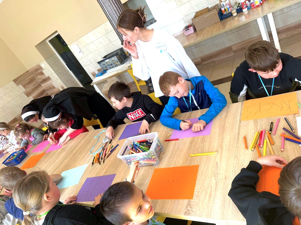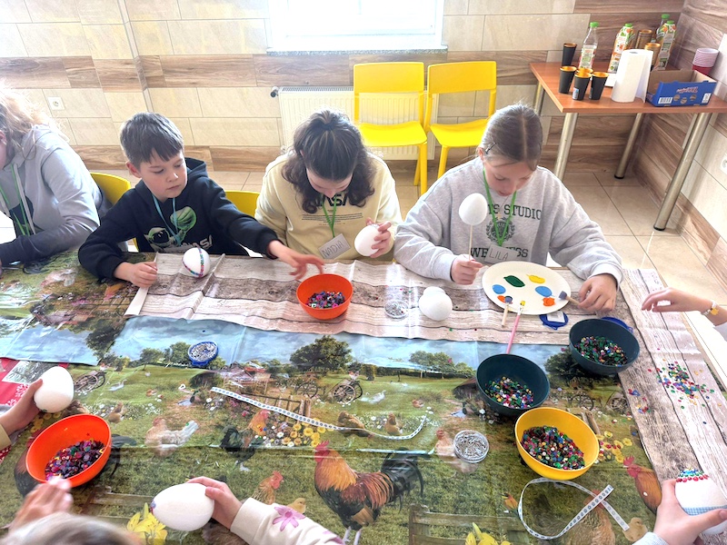 Wydarzenie odbyło się 14 marca 2026 r. i było kolejnym z cyklu spotkań dla dzieci w wieku 7 – 10 lat i nakierowanych na integrowanie przeżyć duchowych z doświadczeniem wspólnoty. Finałem kilkugodzinnego przebywania razem były warsztaty. Dzieci korzystały ze swojej wyobraźnię i posługując się „jajkami” ze styropianu i tektury wykonywały świąteczne dekoracje. Jak się okazało wspólna praca daje radość tworzenia czegoś dobrego i miłego dla innych.