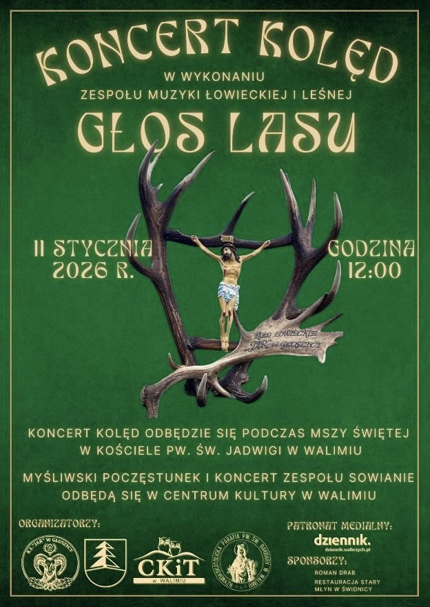 Na koncert Bożonarodzeniowy i wspólne biesiadowanie z racji swojego jubileuszu 80-lecia zaprasza Parafia pw. św. Barbary w Walimiu. Spotkania odbędą się 11 stycznia 2026 r. o godz. 12:00 w kościele św. Jadwigi, a później w Centrum Kultury i Turystyki w Walimiu.