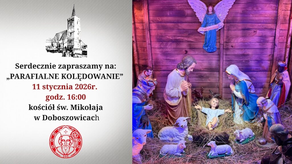 Wspólne kolędowanie będzie udziałem wszystkich, którzy 11 stycznia 2026 r. o godz. 16:00 przybędą do kościoła parafialnego pw. św. Mikołaja w Doboszowicach.