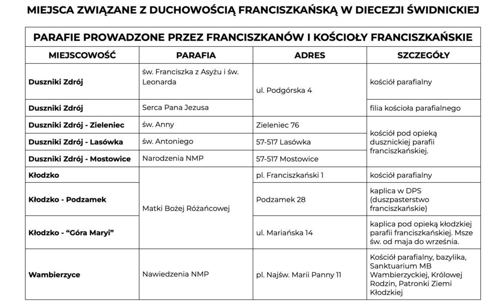 Rok 2026 to dla całej rodziny franciszkańskiej czas szczególny. Obchodzimy 800. rocznicę przejścia św. Franciszka z ziemi do nieba. Z tej okazji Penitencjaria Apostolska, na mocy decyzji Ojca Świętego, ogłosiła możliwość uzyskania odpustu zupełnego we wszystkich miejscach kultu związanych z Biedaczyną z Asyżu. Takie miejsca są również w Diecezji Świdnickiej.
