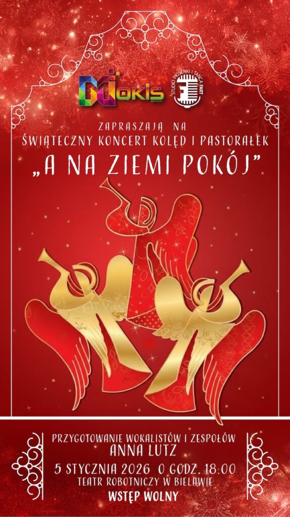 - Parafia pw. Wniebowzięcia Najświętszej Maryi Panny w Bielawie informuje o koncercie pod hasłem „A na ziemi pokój”, który odbędzie się 5 stycznia 2026 r. o godz. 18:00 w Teatrze Robotniczym w Bielawie.