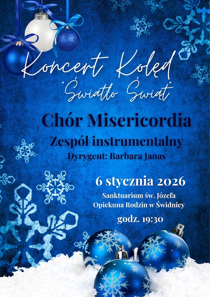 - W Sanktuarium św. Józefa Oblubieńca Najświętszej Maryi Panny w Świdnicy odbędzie się koncert pod hasłem „Światło Świąt” w wykonaniu Chóru „Misericordia” z udziałem zespołu instrumentalnego. Wydarzenie zaplanowane jest na 6 stycznia 2026 r. na godz. 19:30.