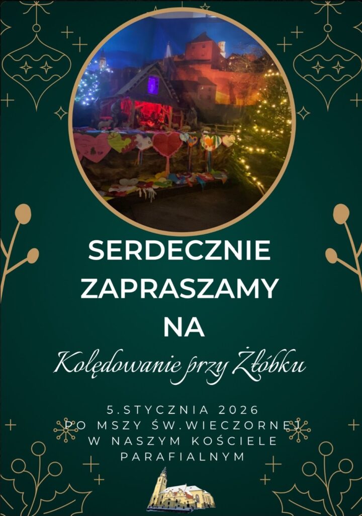 - Duszpasterze z Kolegiaty pw. Matki Bożej Bolesnej i Świętych Aniołów Stróżów w Wałbrzychu zapraszają na wspólne kolędowanie 11 stycznia 2026 r. o godz. 19:00 w Domu Katechetycznym.