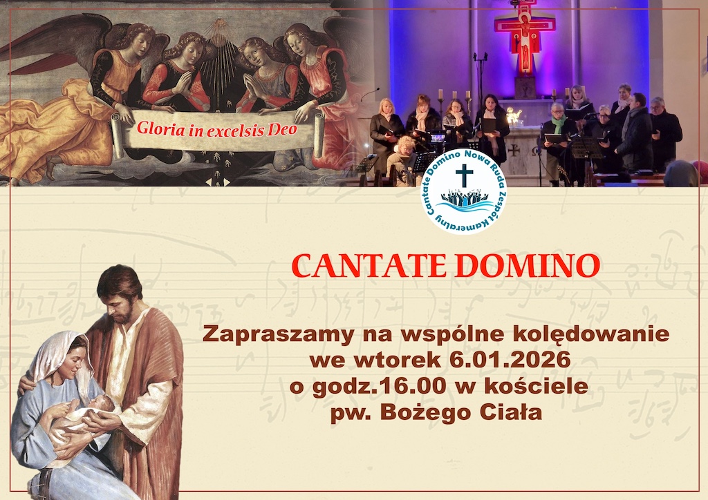 - Do udziału w radosnym śpiewaniu kolęd i pastorałek zapraszają parafii pw. św. Mikołaja w Nowej Rudzie. Spotkanie odbędzie się 6 stycznia 2026 r. o godz. 16:00 w kościele pw. Bożego Ciała i będzie animowane przez Scholę „Cantate Domino”.