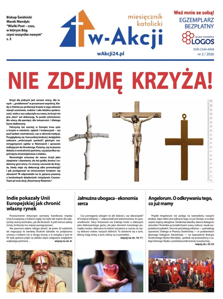 Jak zawsze „w-Akcji” zamieszcza artykuł ks. biskupa świdnickiego Marka Mendyka „Wielki Post – czas, w którym Bóg czyni wszystko nowym”. Ten tekst porządkuje sens postu: mniej presji, więcej realnej przemiany serca. W numerze wraca też wielkopostny konkret: modlitwa, post, jałmużna – w logice czynu i odpowiedzialności. Redakcja stawia pytanie o pomoc ubogim i przypomina perspektywę biblijną: „Czy pomaganie ubogim to akt dobroci, czy obowiązek? (…) odpowiedź jest jednoznaczna: to sprawiedliwość.” To mocna biblijna definicja, która ucieka od sentymentalizmu i sprowadza sprawę na ziemię: miłość bliźniego ma mieć formę.