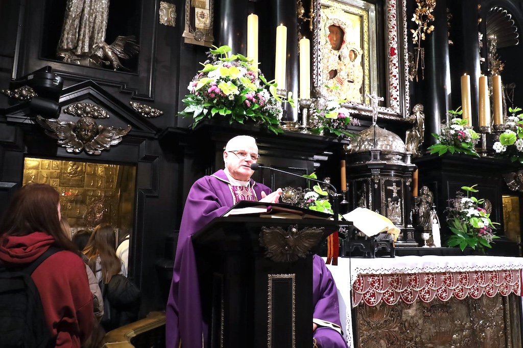 Już sama obecność w narodowym sanktuarium pokazuje, że młodzi są uczniami i chcą pogłębiać swoją wiarę. Przyjeżdżamy do Matki Bożej, aby razem z nimi modlić się o dobre wyniki matury, ale też przede wszystkim o dobre i mądre życiowe wybory. Widzę, że oni poprzez taką pielgrzymkę chcą pogłębiać też swoją wiarę. Chcą ducha wiary rozwijać i iść z nim w dorosłe życie – powiedział ks. Damian Mroczkowski, dyrektor Wydziału Katechetycznego Świdnickiej Kurii Biskupiej. W programie pielgrzymki były Msza św. w Kaplicy Cudownego Obrazu Czarnej Madonny, Droga Krzyżowa na wałach klasztoru oraz konferencja pod hasłem „Zakochaj się w Jezusie”, którą wygłosił ks. Marek Bałwas, kapłan Diecezji Włocławskiej.