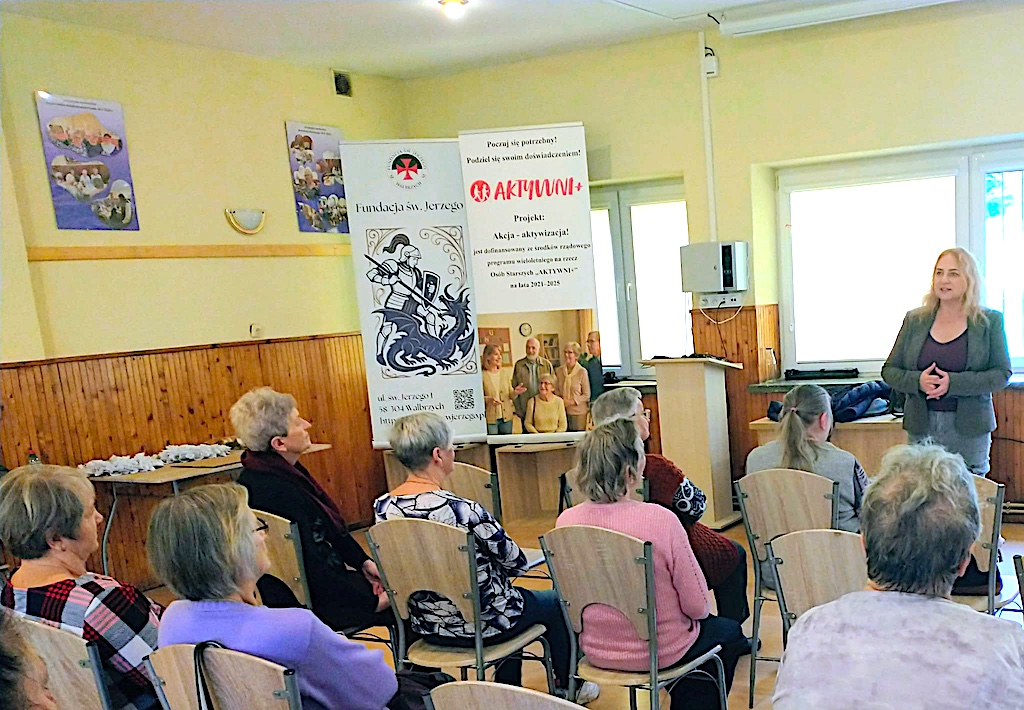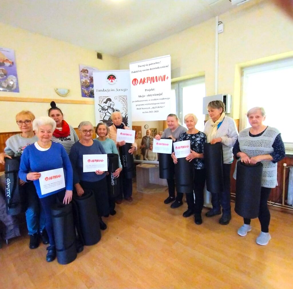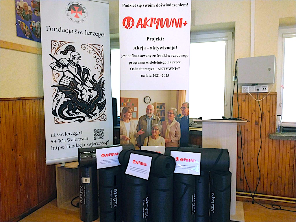16 października 2025 r. podczas kolejnego spotkania zainicjowanego przez Fundację Świętego Jerzego, działającą przy Parafii św. Jerzego i Matki Bożej Różańcowej w Wałbrzychu, mowa była o tym, jak aktywność fizyczna pomaga walczyć ze starością i demencją. Dzięki niej można czuć się i wyglądać młodo. Cieszyć się sprawnym mózgiem i pamięcią. Uczestnicy projektu „Akcja – aktywizacja! #Aktywni+” postanowili zachować sprawność, niezależność i dobre samopoczucie poprzez wspólną gimnastykę. W tym celu zostały zakupione maty, które stanowią wygodne podłoże do wielu ćwiczeń i uchronią przed niepotrzebnym bólem pleców. Dzięki nim można bezpiecznie wykonywać zarówno stałe, jak i dynamiczne formy ćwiczeń. Dodatkowo aktywność na zajęciach grupowych pozwoli na kontakt z innymi oraz integrację, zapewni potrzebę bycia w towarzystwie oraz polepszy samopoczucie psychiczne – piszą organizatorzy zajęć w Wałbrzychu.