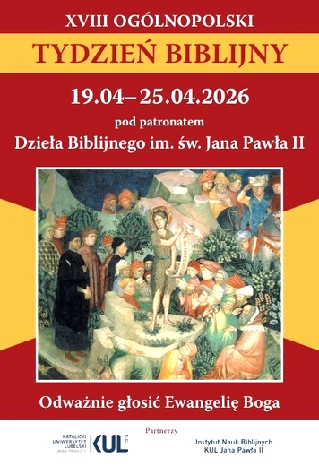 XVIII Ogólnopolski Tydzień Biblijny będzie trwać od 19 do 15 kwietnia 2026 r. W niedzielę inaugurującą ten okres, czyli 19 kwietnia 2026 r. w wielu kościołach – po błogosławieństwie i rozesłaniu – rozdawane będą kartki, tzw. sigla, z wypisanymi fragmentami z Pisma Świętego, które mogą stanowić dla wierzących Boże przesłanie na cały rok. Duszpasterze i katecheci mogą wykorzystać w czasie Ogólnopolskiego Tygodnia Biblijnego materiały pomocnicze udostępnione przez Przegląd Biblijny.