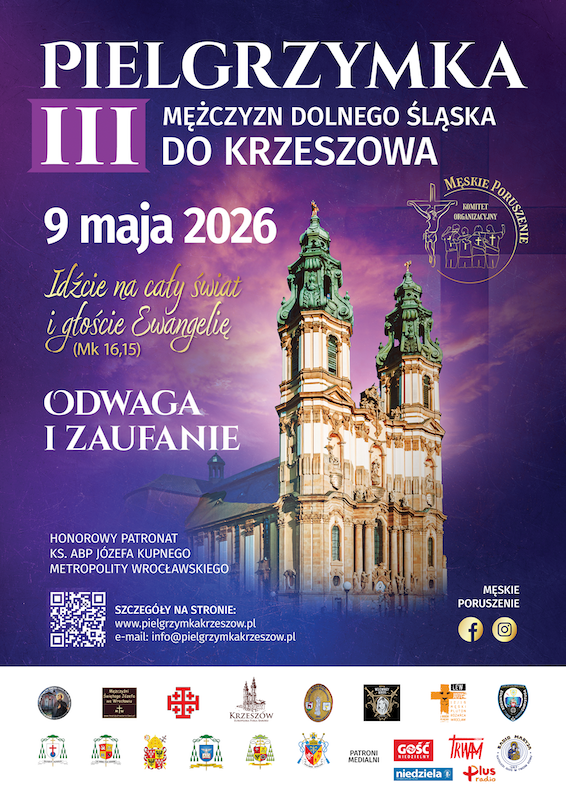 III Pielgrzymka Mężczyzn Dolnego Śląska do Do Sanktuarium Matki Bożej Łaskawej w Krzeszowie odbędzie się 9 maja 2026 r. w godz. 8:30 – 17:00. Zapisy prowadzone są elektronicznie poprzez stronę internetową organizatora. Szczegółowe informacje o przebiegu spotkania dostępne są na stronie internetowej PielgrzymkaKrzeszów.pl oraz poprzez kod QR widoczny na poniższej infografice. Udział jest bezpłatny, choć można wesprzeć wydarzenie poprzez serwis https://zrzutka.pl/f4x5et.