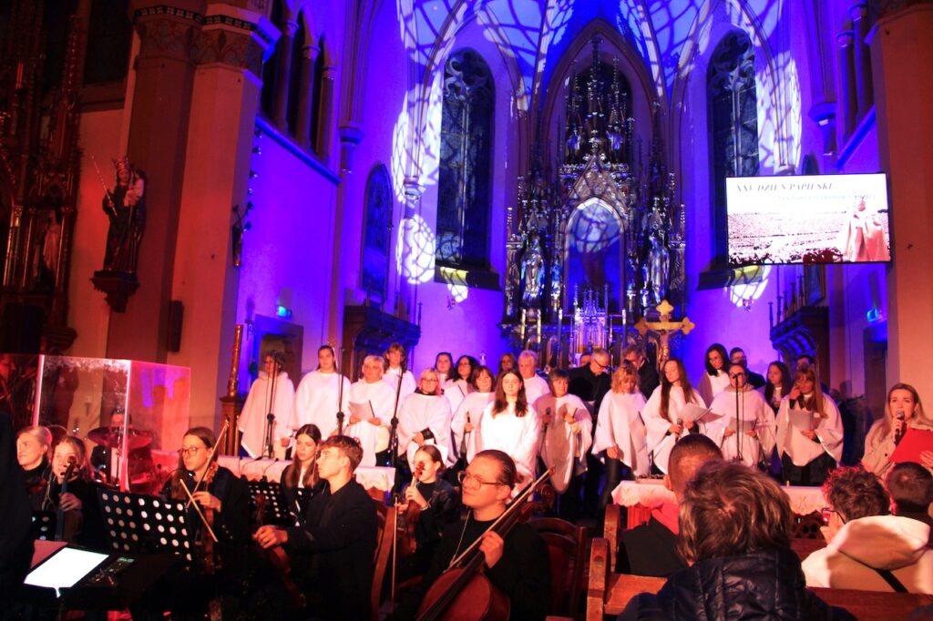 Koncert uwielbieniowy pod hasłem „Jan Paweł II – prorok nadziei” przygotowała i poprowadziła Rodzina Sygnału Miłosierdzia, podobnie jak rok temu. 12 października 2025 w całym Kościele w Polsce, w tym w Diecezji Świdnickiej, przypadał kolejny Dzień Papieski poprzedzający rocznicę wyboru ks. kardynała Karola Wojtyły na Ojca Świętego Jana Pawła II. Dokonało się to 16 października 1978 r., a cały 27-letni pontyfikat „polskiego papieża” stał się dla chrześcijaństwa i globalnej społeczności przełomem w wielu dziedzinach. Sam Jan Paweł II emanował intelektem i prostotą, skupieniem i radością, determinacją w głoszeniu Ewangelii i głęboko zakorzenioną wiarą.