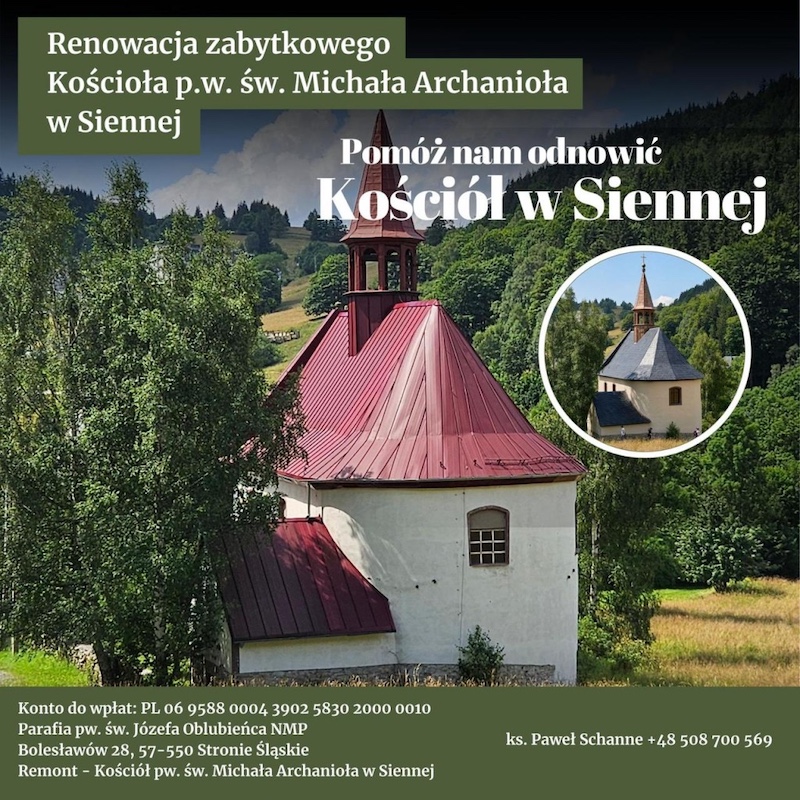 Parafia pw. św. Józefa Oblubieńca Najświętszej Maryi Panny w Bolesławowie zaprasza na odpust patronalny poprzedzony pielgrzymką ze Stronia Śląskiego. Wspólnota szuka także wsparcia przy renowacji zabytkowego kościoła pw. św. Michała Archanioła w Siennej.