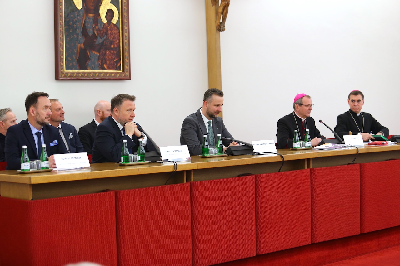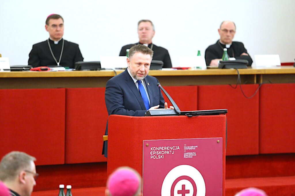 Pierwszego dnia, gośćmi zebrania plenarnego polskich biskupów byli wicepremier i minister obrony narodowej Władysław Kosiniak-Kamysz oraz minister spraw wewnętrznych administracji Marcin Kierwiński. Przedmiotem spotkania była aktualna sytuacja wewnętrzna i międzynarodowa, a także niektóre kwestie dotyczące możliwego współdziałania państwa i Kościoła w zakresie pomocy ludności w wypadku klęsk żywiołowych, katastrof naturalnych i innych możliwych zagrożeń. Wskazano na ogromne doświadczenie przy podejmowaniu wielowymiarowych działań przez Caritas Polska, Caritas diecezjalne i inne organizacje kościelne w organizowaniu wsparcia materialnego i logistycznego dla przebywających w Polsce uchodźców z Ukrainy, a także w koordynowaniu przez te organizacje pomocy humanitarnej Kościoła dla osób potrzebujących w wielu miejscach na świecie – czytamy w komunikacie udostępnionym przez Biuro Prasowe KEP.