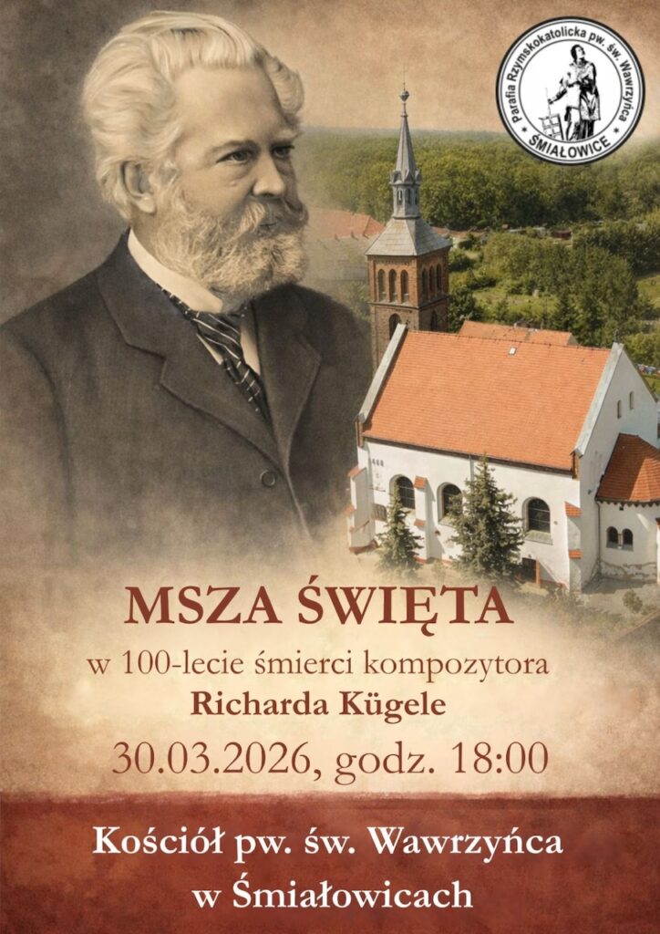 Parafia pw. św. Wawrzyńca w Śmiałowicach zaprasza do udziału w religijnym i kulturalnym upamiętnieniu 100-lecia śmierci kompozytora Richarda Kügele związanego z naszym regionem.