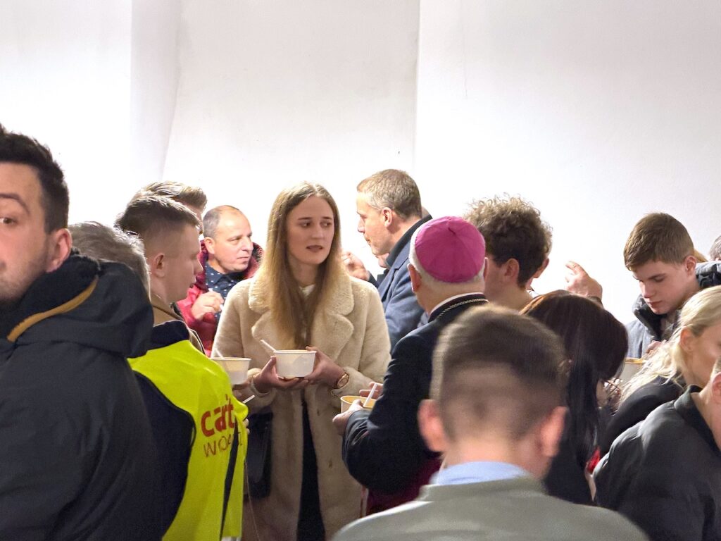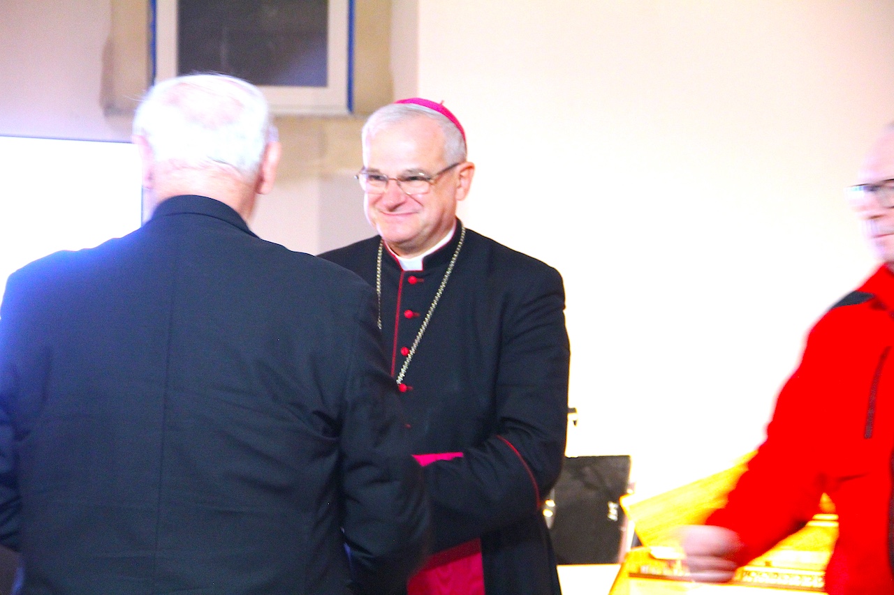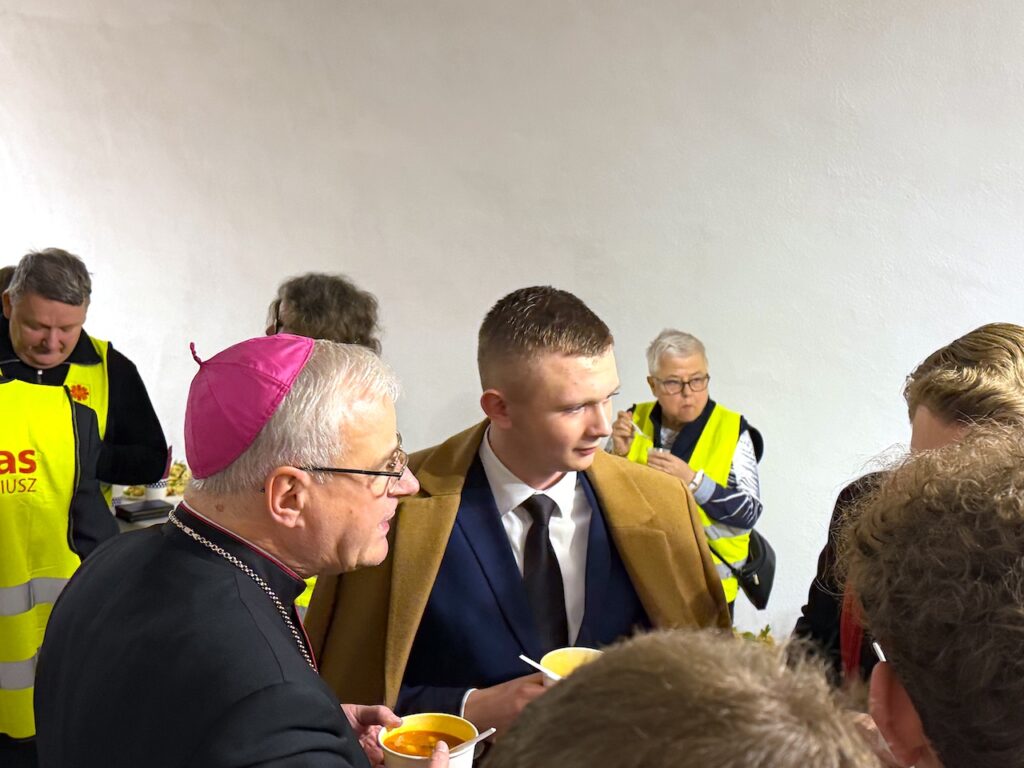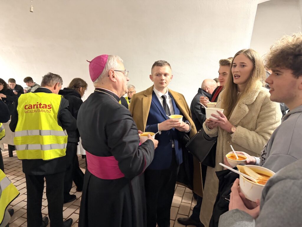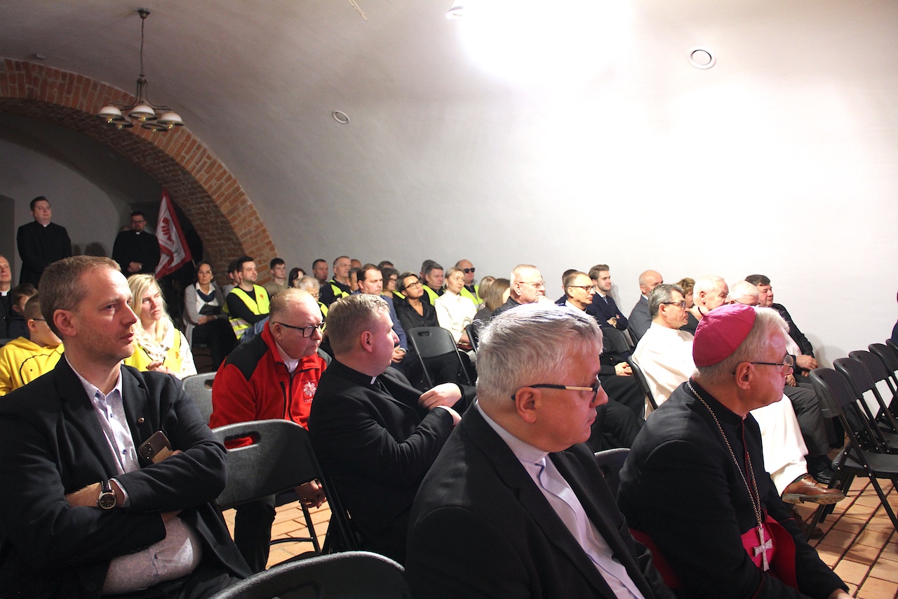 Na zakończenie spotkania ks. biskup świdnicki Marek Mendyk, dzieląc się osobistym świadectwem przeżyć z września 2024 r. oraz wielu późniejszych doświadczeń związanych z powodzią i łagodzeniem jej skutków, podkreślał, że obok fali ludzkich nieszczęść, było też wiele dobra. Wspólnota wokół udzielanej pomocy, współdziałanie sąsiadów na zalanych terenach, wsparcie duchowe i materialne, zwyczajne ludzkie towarzyszenie w smutkach i problemach powodzian, stało się rodzajem rekolekcji. Pasterz Diecezji Świdnickiej dziękował wszystkim dobroczyńcom, którzy pracowitością lub ofiarnością wytworzyli aurę nadziei wbrew tragizmowi sytuacji wywołanej żywiołem. Biskup Marek Mendyk udzielił błogosławieństwa osobom, które udzielały pomocy powodzianom i nadal niosą niezbędne wsparcie.