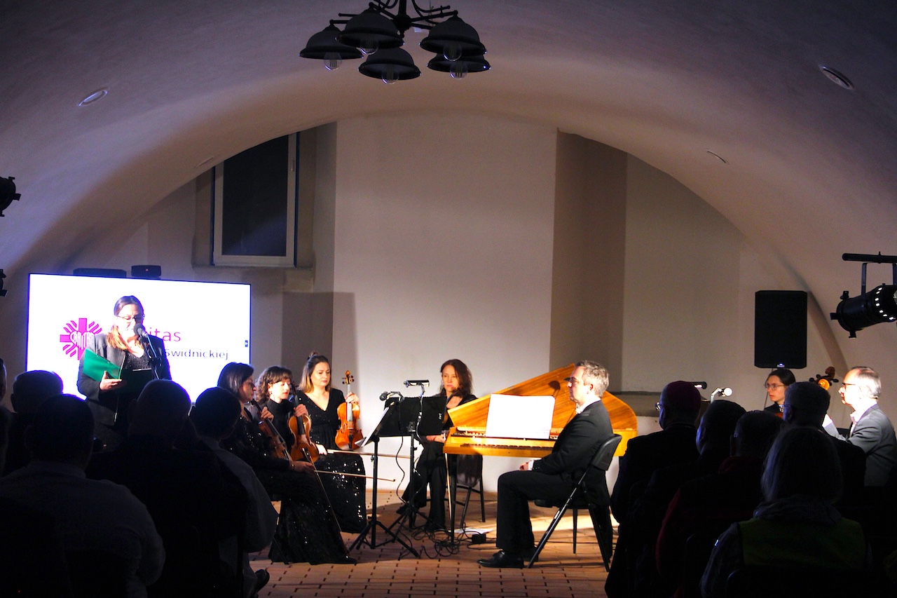 Uroczysta Gala Caritas Diecezji Świdnickiej odbyła się 14 grudnia 2025 r. w podziemiach Kolegium Jezuickiego w Świdnicy. Na spotkanie przybyli wolontariusze i duszpasterze z wielu parafii. Wieczór rozpoczął się od koncertu w wykonaniu sekstetu muzyki klasycznej „Camerata Angelorum”. Muzycy wykonali między innymi dzieła: Johanna Sebastiana Bacha, Andrzeja Panufnika i Johanna Pachelbela. Harmonia muzycznych brzmień w wykonaniu wirtuozów pod dyrekcją Kacpra Biruli była niespodzianką dla wolontariuszy. Zarejestrowane amatorską kamerą trzy utwory można wysłuchać poprzez nagrania udostępnione na platformie You Tube (znajdujące się na końcu tej relacji).