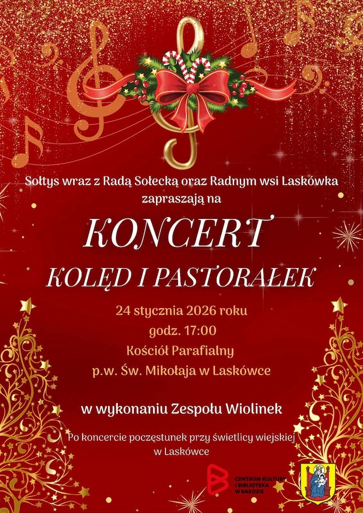 - Koncert kolęd i pastorałek w wykonaniu zespołu „Wiolinek” odbędzie się 24 stycznia 2026 r. o godz. 17:00 w kościele filialnym pw. św. Mikołaja w Laskówce (należącym do Parafii pw. św. Anny w Przyłęku).