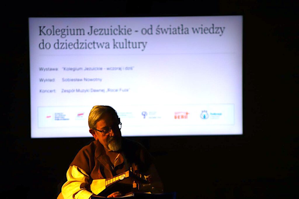 Po wykładzie uczestnicy spotkania przenieśli się w świat dźwięków dawnych wieków. W kameralnej atmosferze wystąpił zespół „Rocal Fuza” znany z autentyzmu wykonywanej muzyki dawnej. Artyści grali na instrumentach historycznych, przenosząc publiczność w czasy, gdy podobne melodie mogły rozbrzmiewać w tych samych murach. Dźwięki m.in. barokowej muzyki, odbijające się od kamiennych sklepień, stworzyły niepowtarzalny klimat. Koncert był nie tylko artystycznym dopełnieniem spotkania, ale też symbolicznym powrotem do duchowej atmosfery dawnego kolegium.