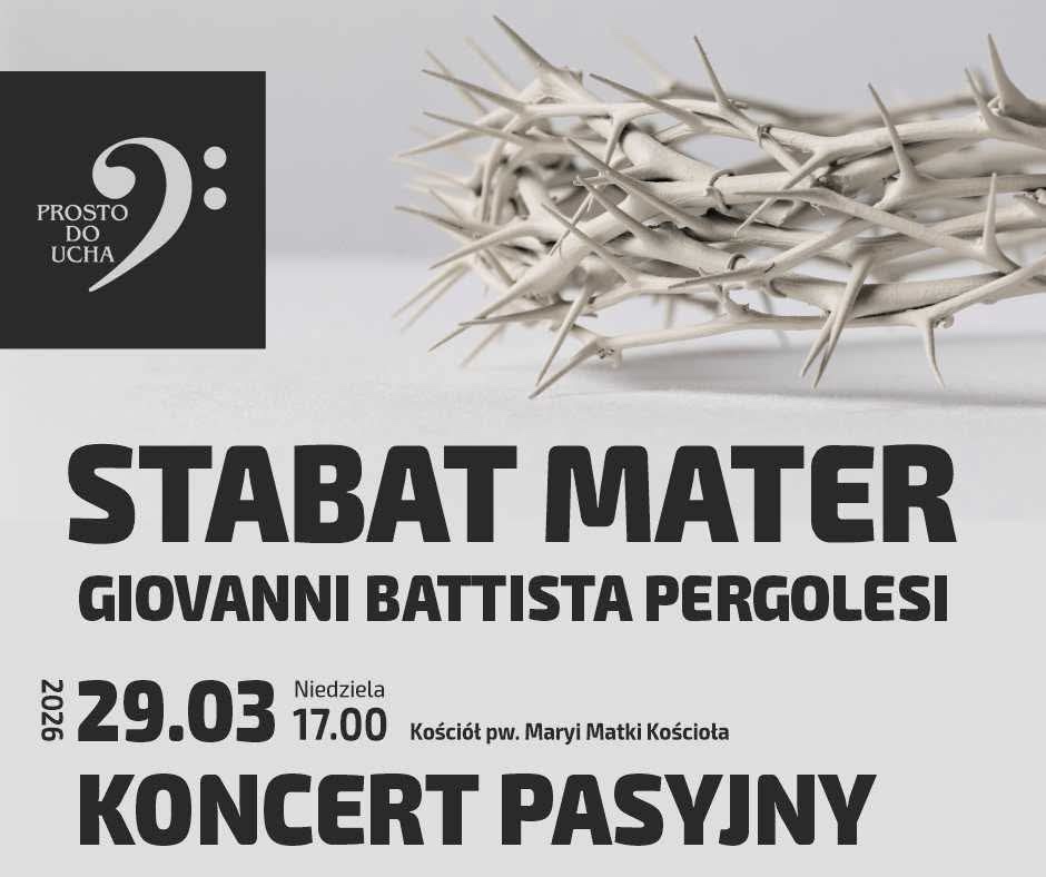 Koncert „Stabat Mater” Giovanniego Battisty Pergolesiego odbędzie się 29 marca 2026 r. o godz. 17:00 w kościele parafialnym pw. Maryi Matki Kościoła w Dzierżoniowie. Organizatorem wydarzenia jest Fundacja „Prosto do ucha”. Wstęp wolny.