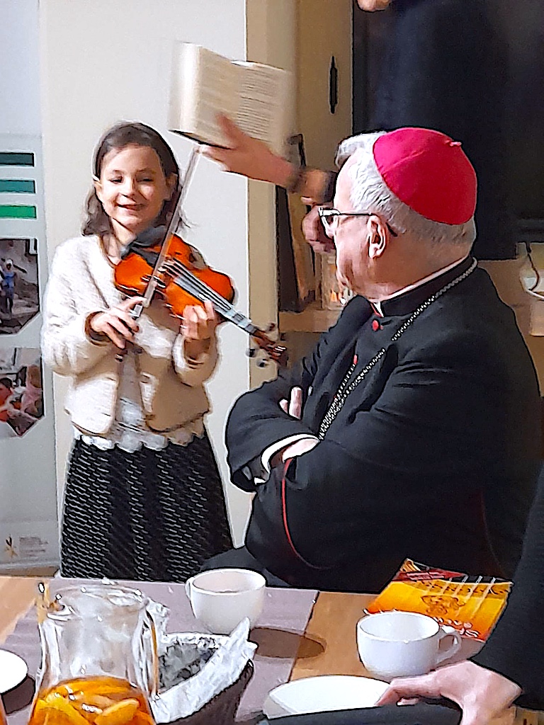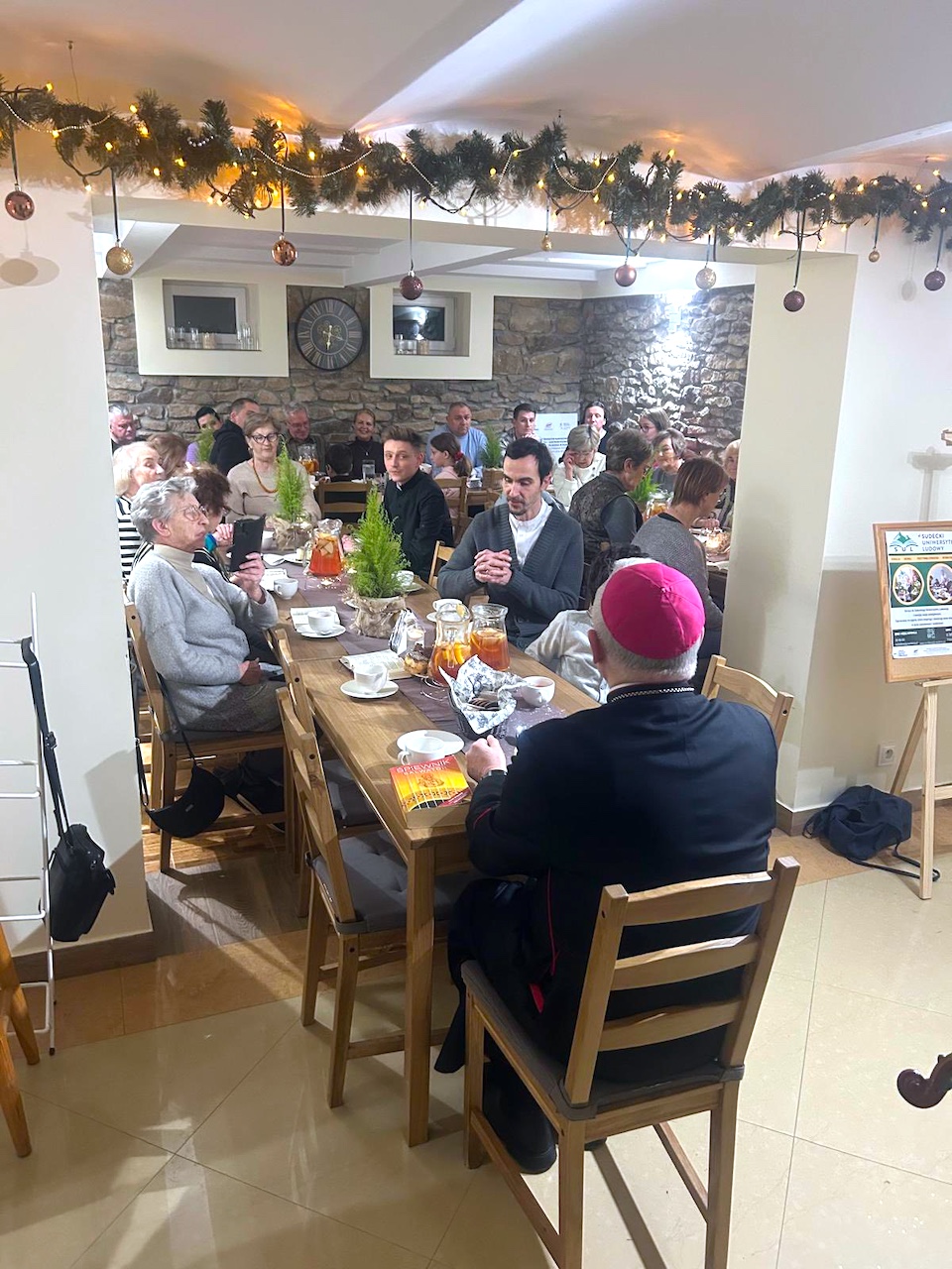 To był piękny czas wspólnego śpiewu, bliskości i świątecznej radości. Najważniejsza była dla nas wspólnota, którą czuć było w każdym słowie. Ogromnie dziękujemy Księdzu Biskupowi Markowi Mendykowi za obecność, życzliwość i słowa, które uczyniły ten wieczór wyjątkowym. Nasze podziękowania płyną również do Wojtka (Sygnał Miłosierdzia), Konstantego, Klemensa i Filomeny – za wspaniałe granie i muzyczną energię oraz Eli i Basi – za pyszne potrawy i rozgrzewający kociołek, które dopełniły ten wieczór smakiem. Dziękujemy wszystkim za obecność! Niech ta kolęda zostanie w nas na długo – napisała w krótkiej relacji s. Rufina Maksymiak, koordynatorka Sudeckiego Uniwersytetu Ludowego działającego w Diecezji Świdnickiej.