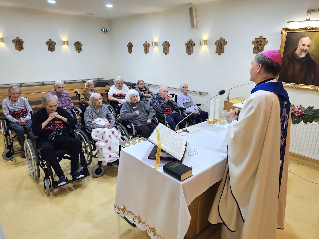 Podczas Eucharystii biskup udzielił także sakramentu namaszczenia chorych pacjentom hospicjum, modląc się o umocnienie dla nich w chorobie oraz o pokój serca. Wraz z ks. Janem Gargasewiczem, dyrektorem NZOZ Caritas, wyraził wdzięczność całemu personelowi medycznemu, opiekunom i wolontariuszom za ich profesjonalizm, oddanie i wrażliwość na potrzeby chorych.