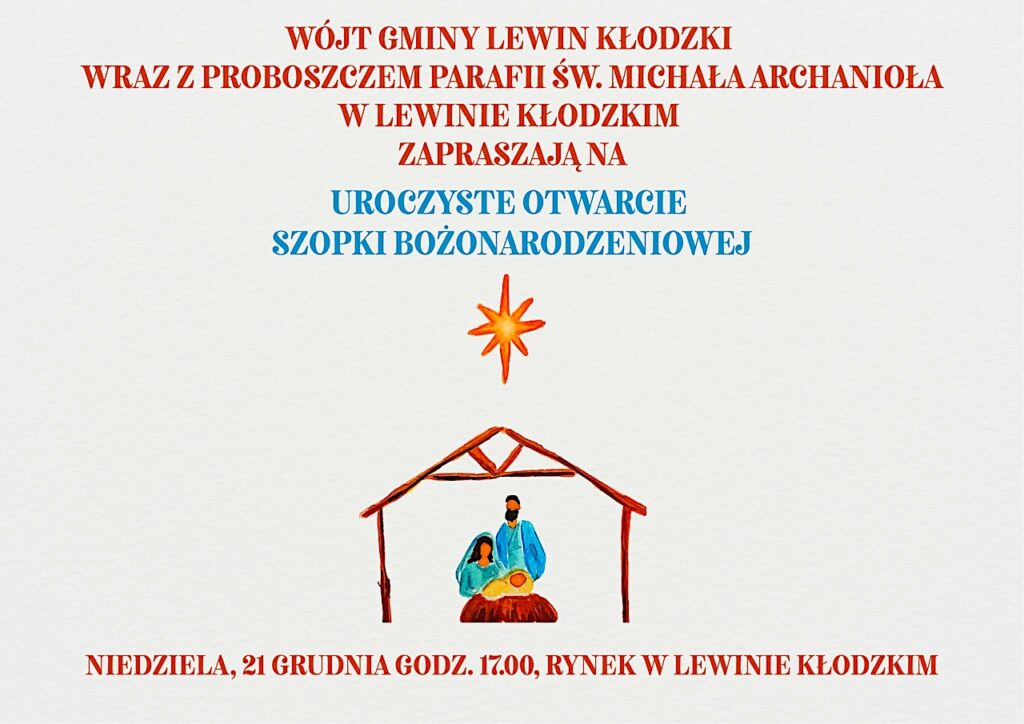 Otwarcie Szopki Bożonarodzeniowej połączone z jej poświęceniem nastąpi 21 grudnia 2025 r. o godz. 17:00 na rynku w Lewinie Kłodzkim.